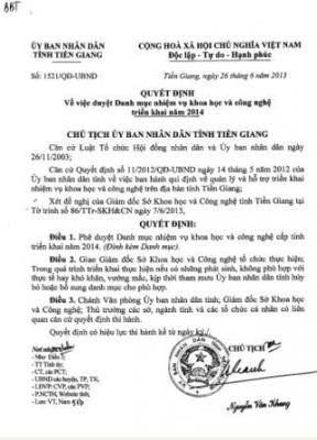 Ban hành Quy định về quản lý và hỗ trợ triển khai nhiệm vụ khoa học và công nghệ trên địa bàn tỉnh Tiền Giang.  Chi tiết »