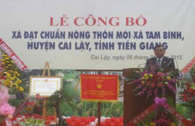 Ngày 06-01-2015, Ủy ban nhân dân huyện Cai Lậy đã phối hợp với Ban Chỉ đạo Chương trình mục tiêu quốc gia xây dựng nông thôn mới tỉnh tổ chức Lễ công bố xã Tam Bình đạt chuẩn nông thôn mới. Đến dự, có lãnh đạo UBND, UBMTTQ tỉnh, các ủy viên Thường vụ Tỉnh ủy; lãnh đạo các sở, ban, ngành, đoàn thể tỉnh, các huyện, thành, thị và các xã điểm xây dựng nông thôn mới trong tỉnh cùng đông đảo nhân dân trong xã. Chi tiết »