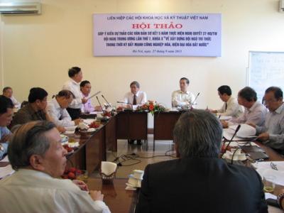 Ngày 27/9/2013, tại Hà Nội, Liên hiệp các Hội Khoa học và Kỹ thuật Việt Nam (Liên hiệp Hội Việt Nam) tổ chức Hội thảo Góp ý kiến dự thảo các văn bản sơ kết 5 năm thực hiện Nghị quyết số 27-NQ/TW, Hội nghị Trung ương lần thứ 7, khóa X về “Xây dựng đội ngũ trí thức trong thời kỳ đẩy mạnh công nghiệp hóa, hiện đại hóa đất nước”.  Chi tiết »