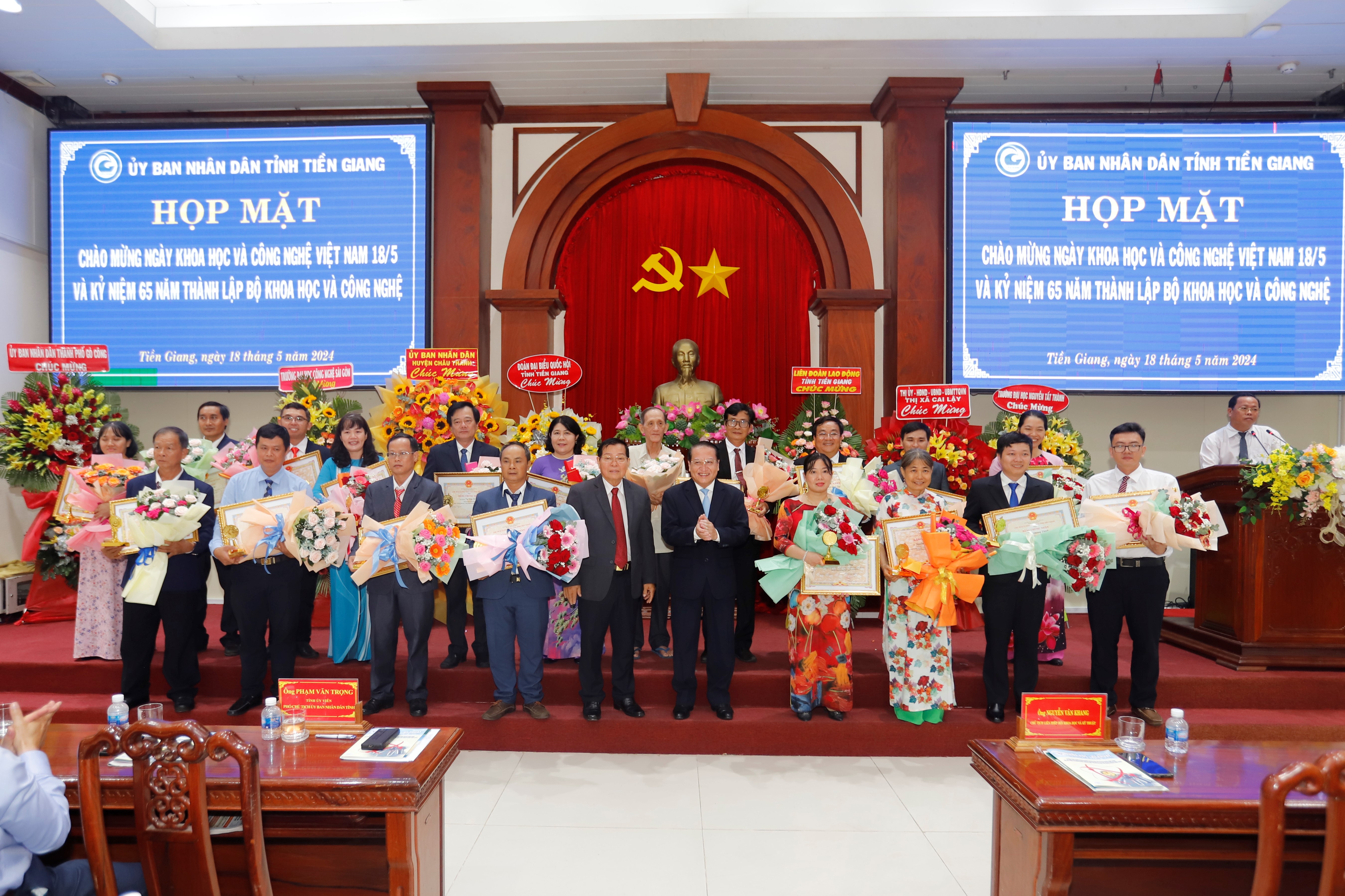 Tại buổi họp mặt, UBND tỉnh tôn vinh, khen thưởng danh hiệu “Trí thức Khoa học – Công nghệ tiêu biểu” tỉnh Tiền Giang giai đoạn 2022 – 2024 cho 25 trí thức do đã có công trình khoa học, đề tài khoa học – công nghệ cấp tỉnh nghiệm thu đạt loại xuất sắc; có giải pháp sáng chế đạt từ giải Ba trở lên Hội thi Sáng tạo kỹ thuật cấp tỉnh hoặc có công trình khoa học được đăng trên tạp chí ISI. Dịp này, có 7 tân tiến sĩ đã bảo vệ thành công Luận án và được cấp bằng tiến sĩ cũng dược vinh danh.
