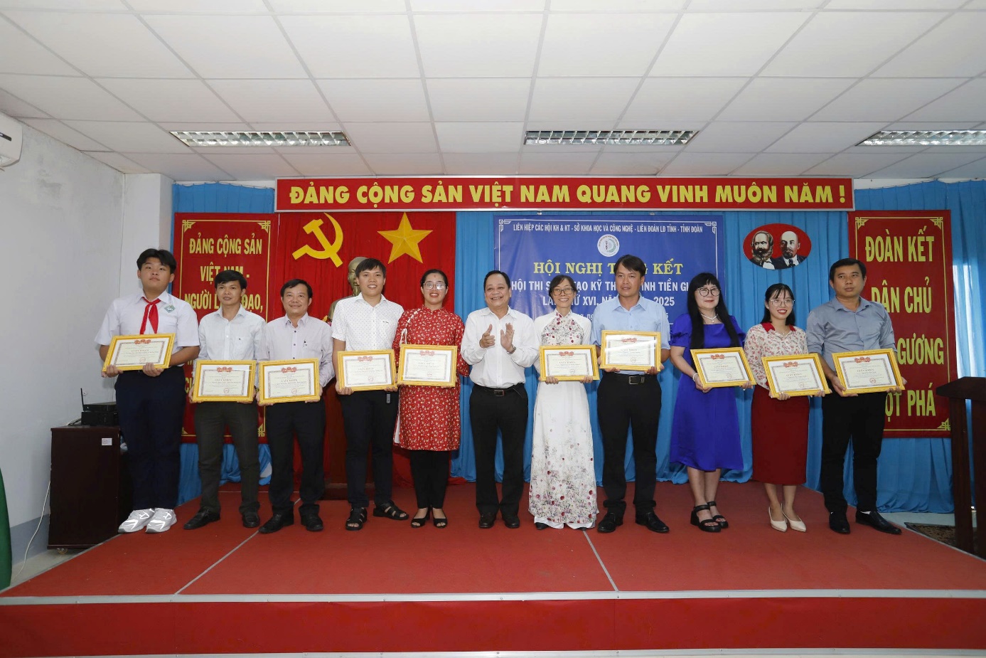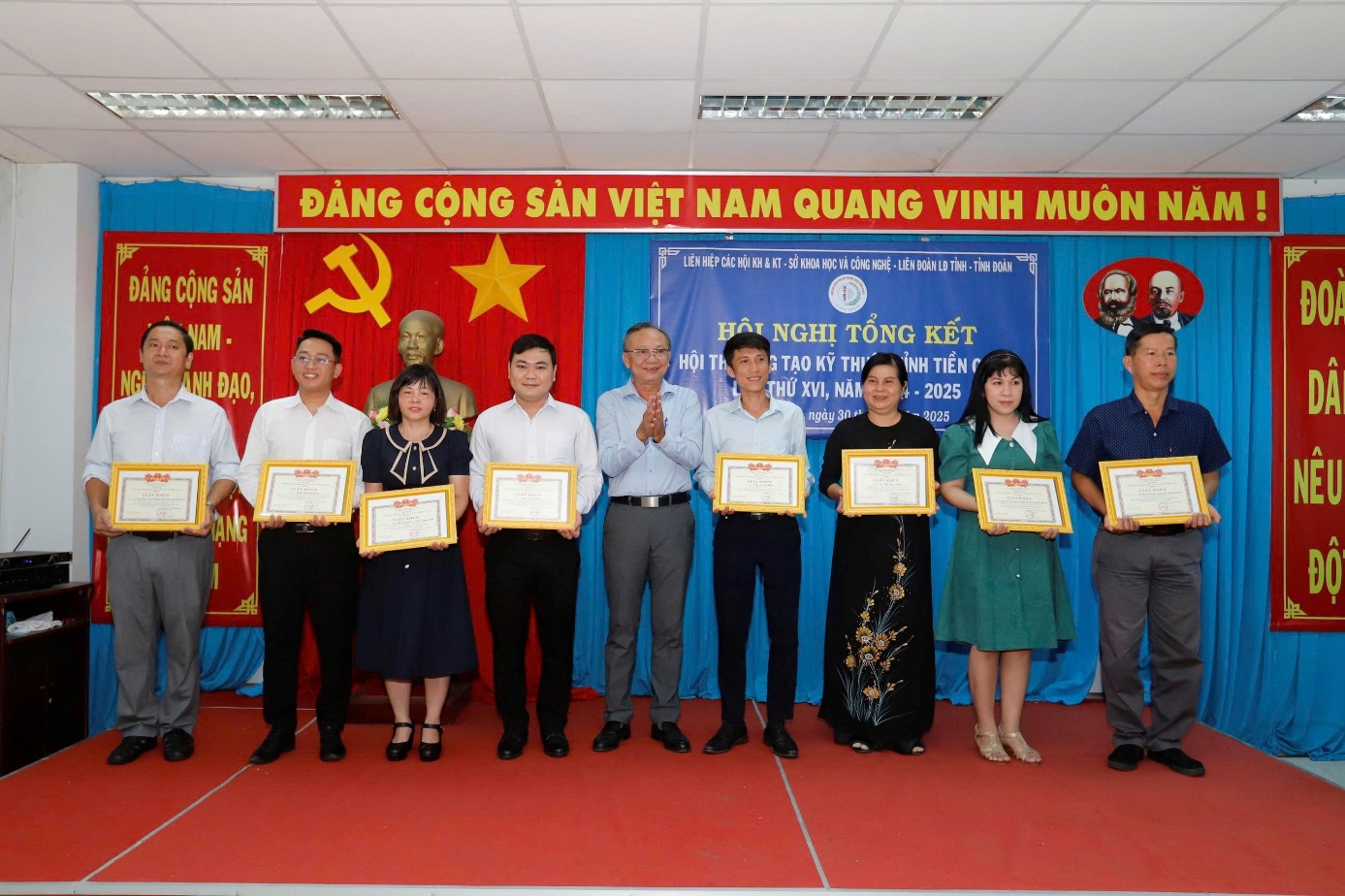 Chiều ngày 30/6/2025, Liên hiệp các Hội Khoa học và Kỹ thuật (Liên hiệp Hội) tỉnh Tiền Giang tổ chức Hội nghị tổng kết và trao thưởng cho 33 giải pháp tham dự Hội thi sáng tạo kỹ thuật tỉnh Tiền Giang lần thứ XVI, năm 2024 – 2025. |